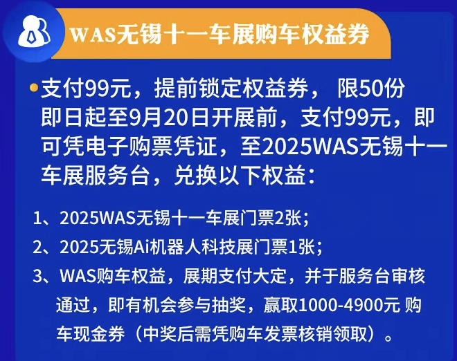 【无锡市】2025WAS无锡十一车展 99元专属权益礼包
